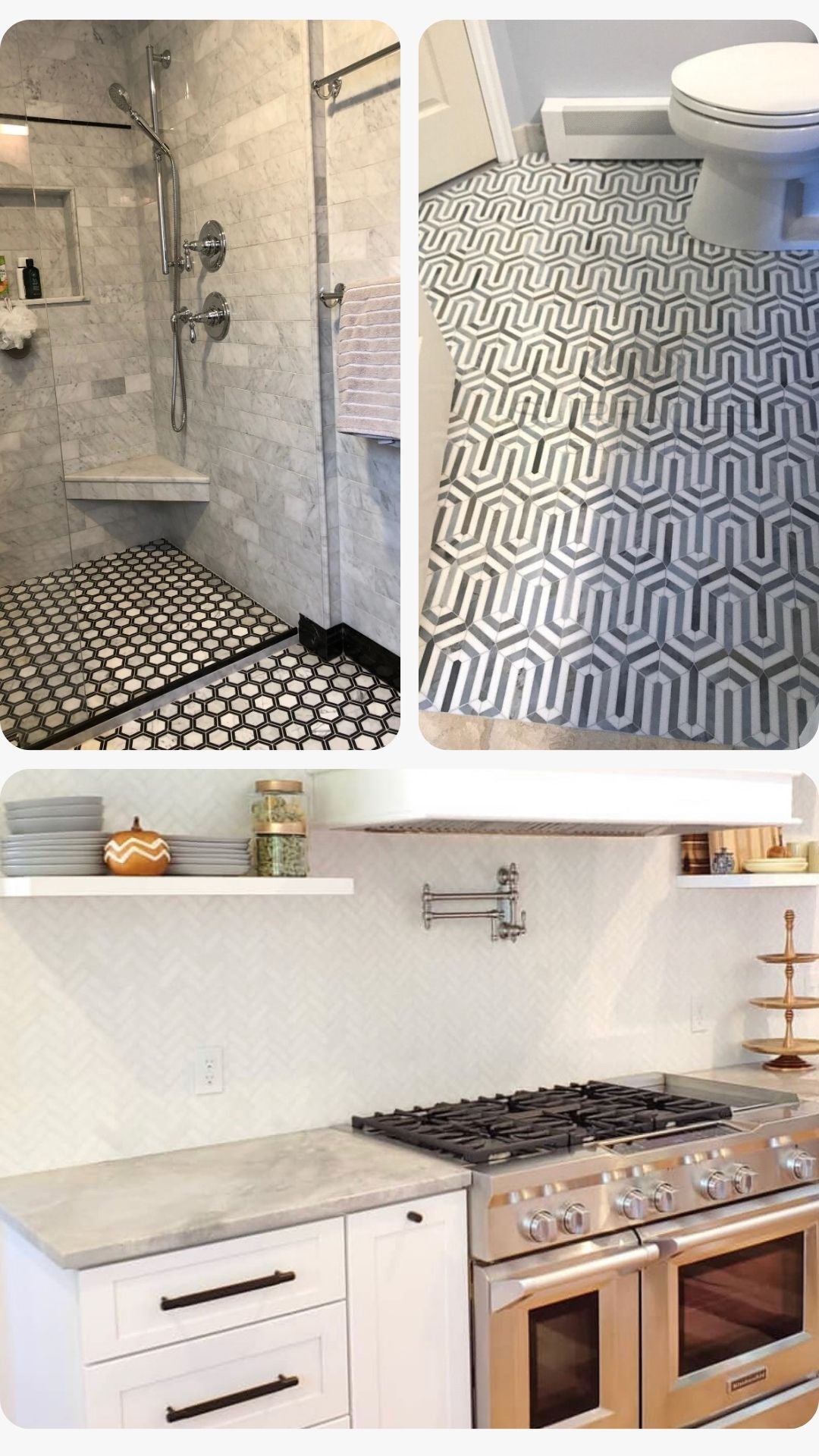 See how customers elevate their homes with marble mosaics, patterns, and classic tile designs.