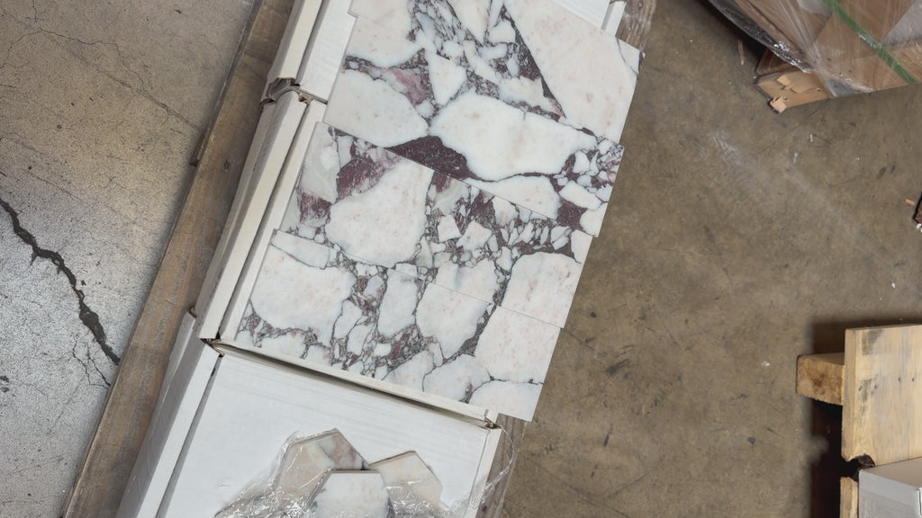 Calacatta Viola Imperiale Marble Tile 4x12 offers a refined and elegant take on classic Calacatta-style marble. This natural stone showcases a light ivory to creamy white base accented by subtle violet, purple-gray, and soft burgundy veining, providing visual interest without overwhelming the space.